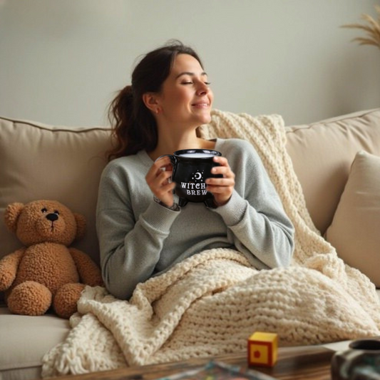 12 oz Black Ceramic Cauldron Mug | Witches Brew Halloween Gift & Decor