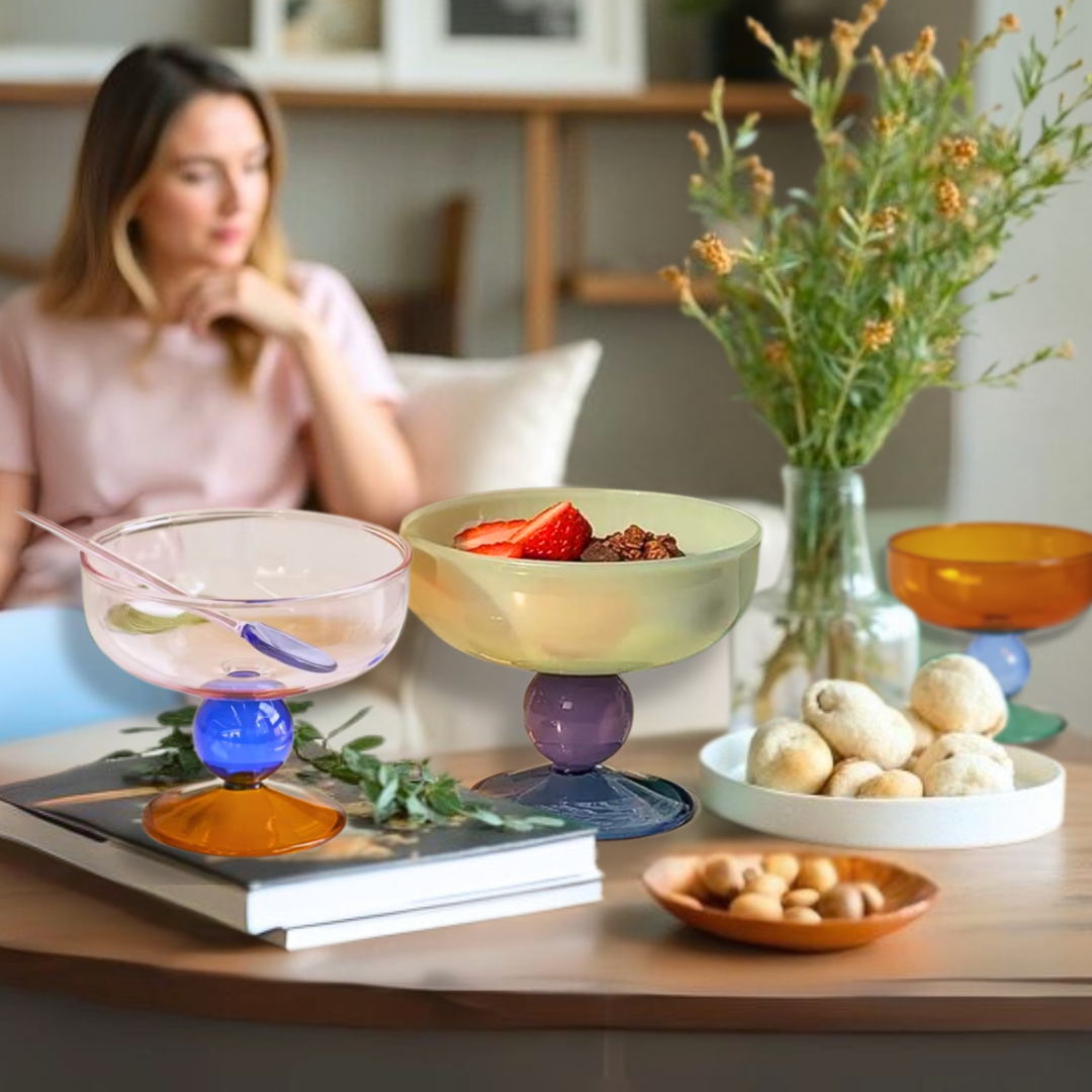 8.5 oz (250 ml) Colorful Glass Dessert Bowl | Heat-Resistant & Goblet Style