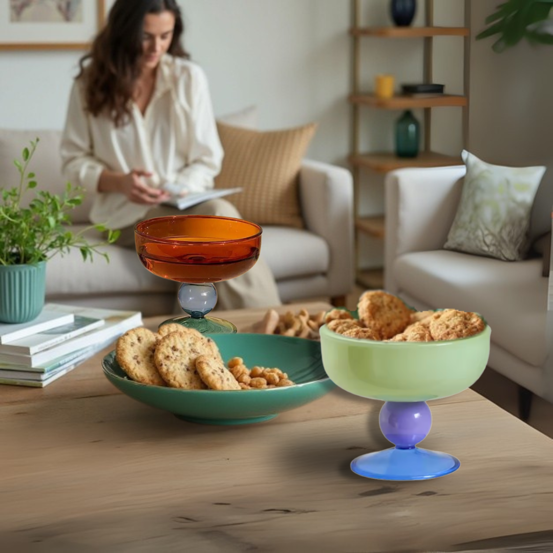 - Colorful & Chic Goblet Design: Elegant shape with a unique round bead detail, perfectly sized for comfortable holding. Available in Green, Pink, Brown, and Gray, these bowls are made from colored glass, not painted, ensuring their beauty never fades.