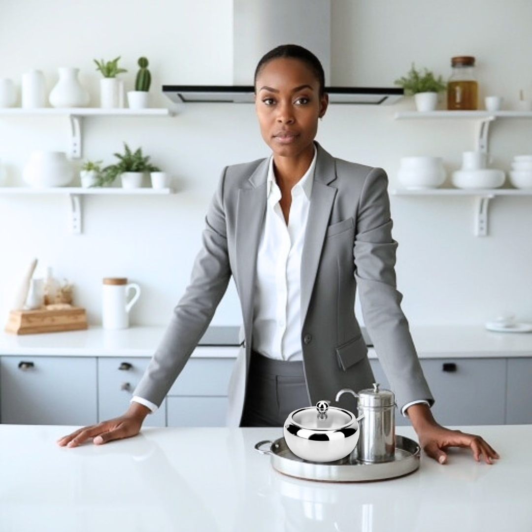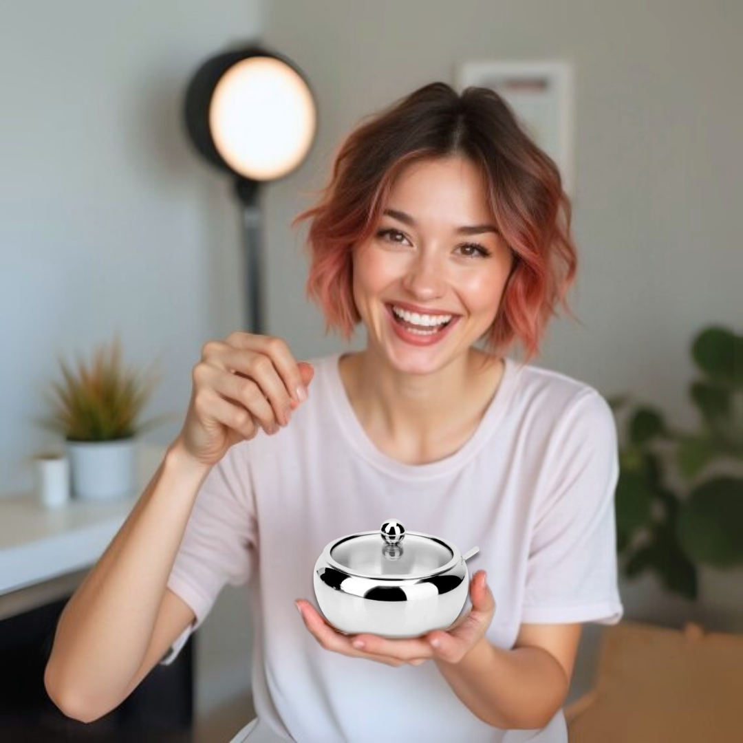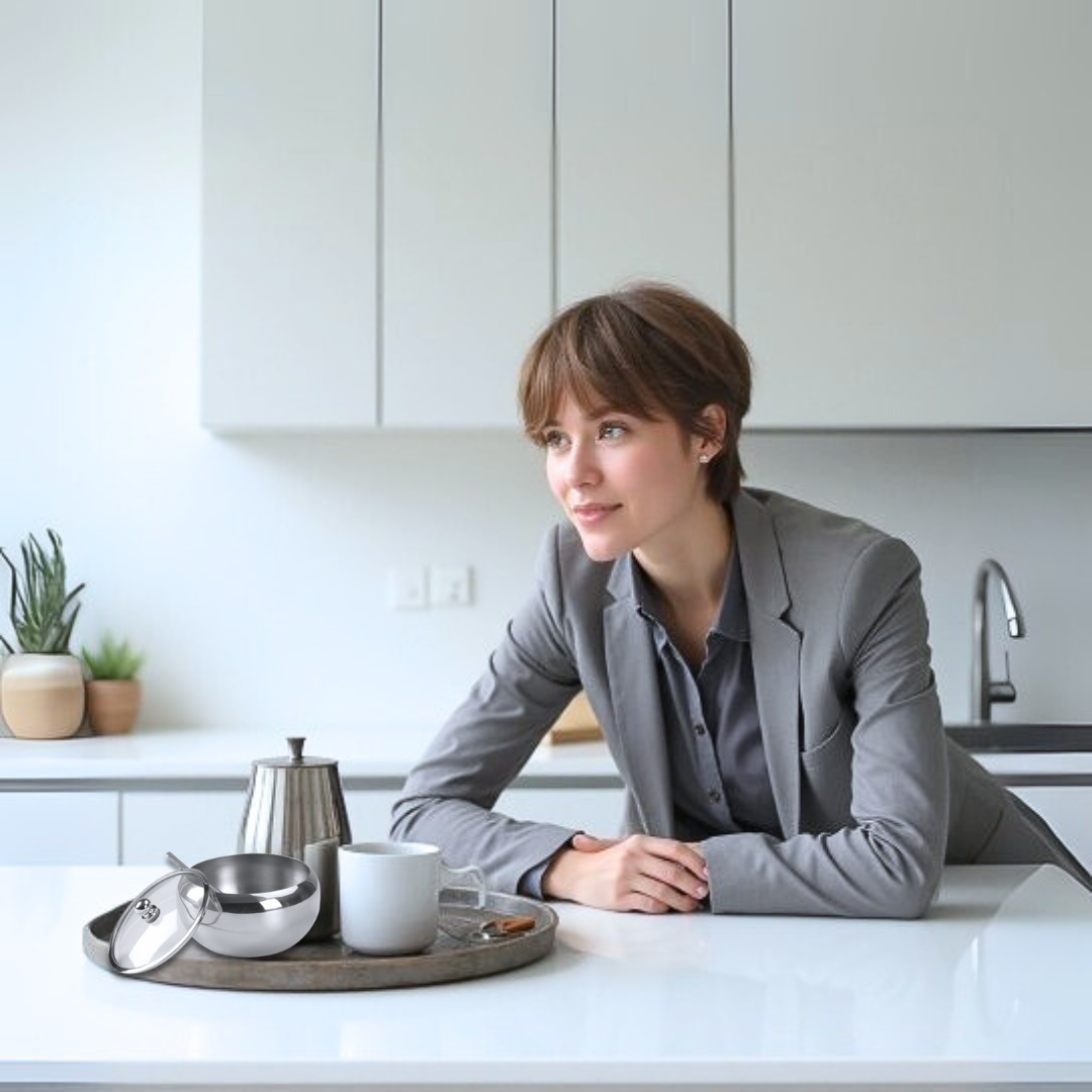 Stainless Steel Sugar Bowl with Lid & Spoon | Drum-Shaped, Save Time & Space
